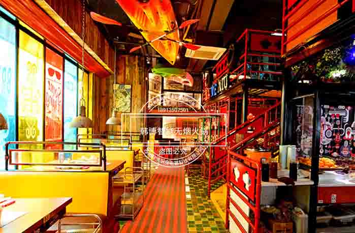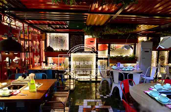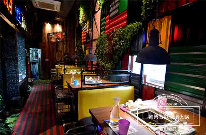 店內(nèi)采用許多年輕元素,時尚活力涂鴉,餐廳處處充滿趣味格調(diào)和時尚新鮮感,給顧客營造一種輕松愉快的環(huán)境。在這吃火鍋你不用擔(dān)心油煙味,因?yàn)樗x用了韓博智能無煙火鍋設(shè)備,節(jié)能、安全、高檔、環(huán)保,油煙去除率高達(dá)99%。